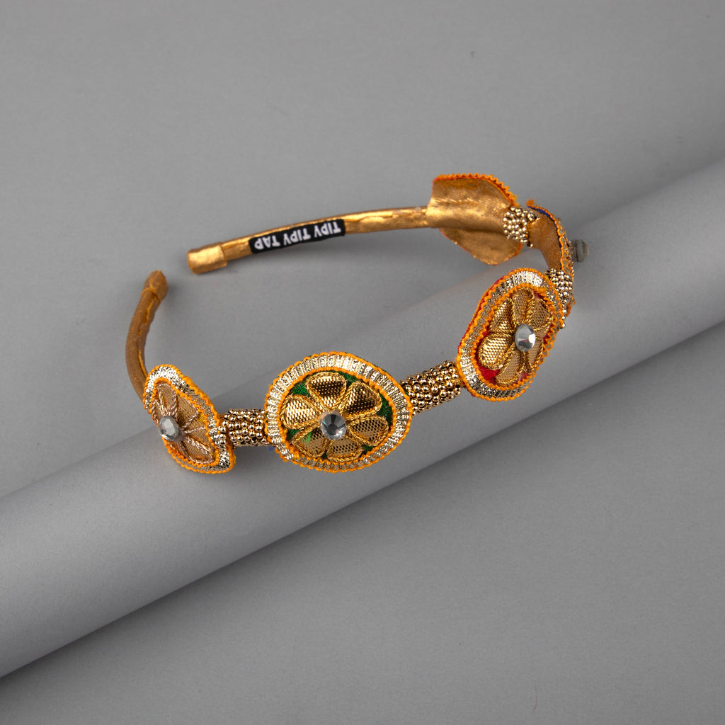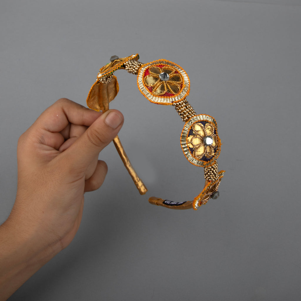 TIARA STYLES HAIRBAND. GOTA FLOWER EMBELLISHED. PERFECT FOR ETHNIC OUTFITS.