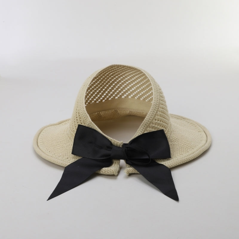 ADJUSTABLE, FOLDABLE JUTE EMPTY TOP SUN HAT WITH BOW AT BACK