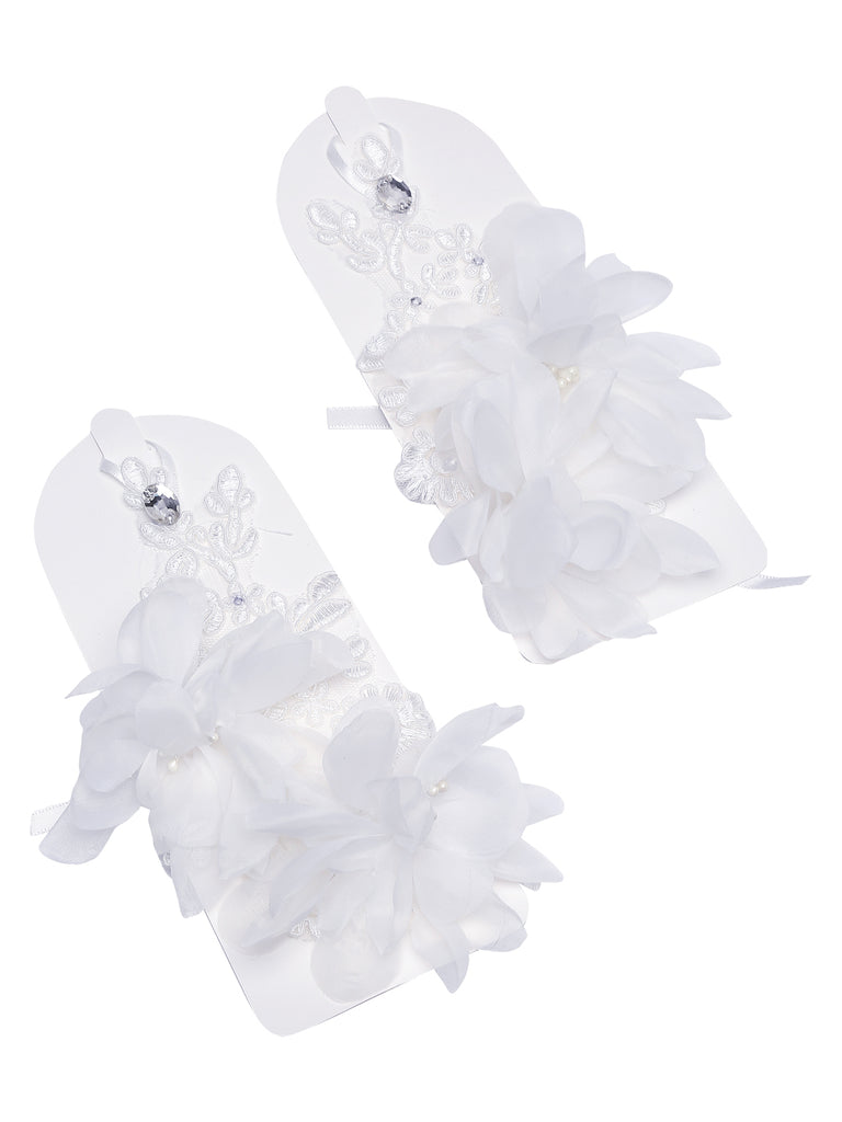 FLOWER GLOVES ARE WRIST LENGTH FINGERLESS GLOVES,MADE OF NYLON WITH STONE EMBELLISHMENT. RIBBON TIE BACK GIVES PROPER FIT. 3D FLOWERS OVER IT IS BEAUTIFUL.