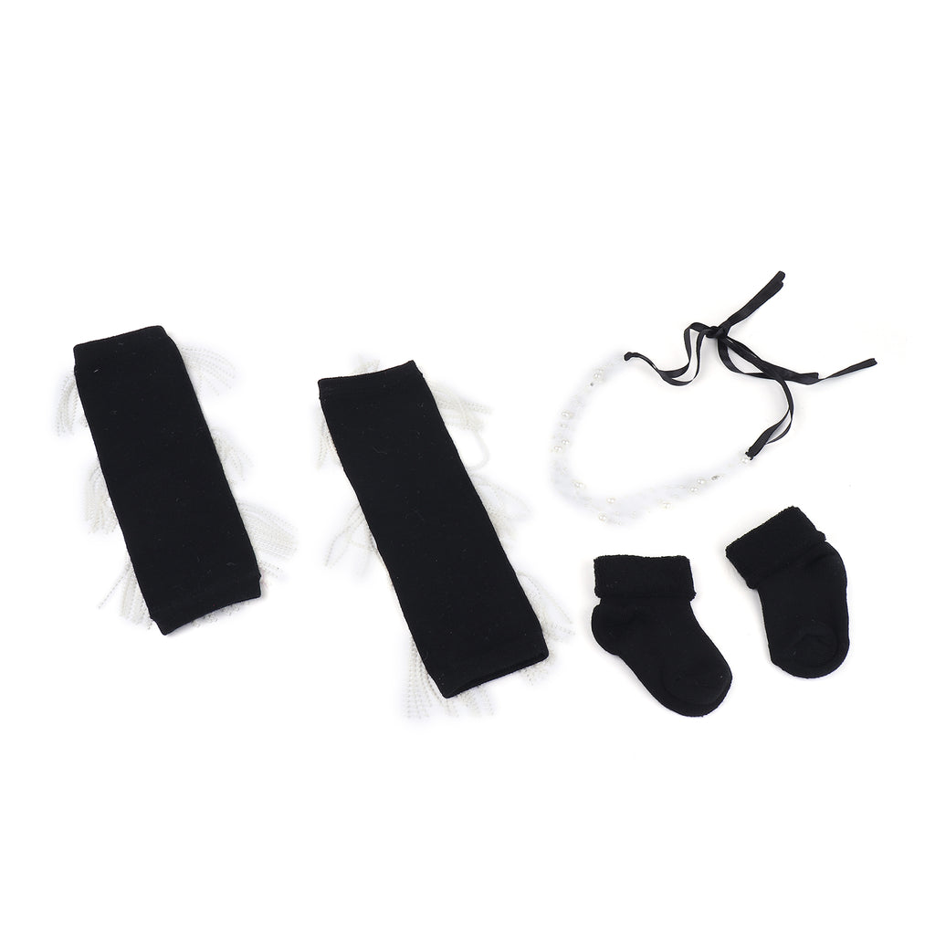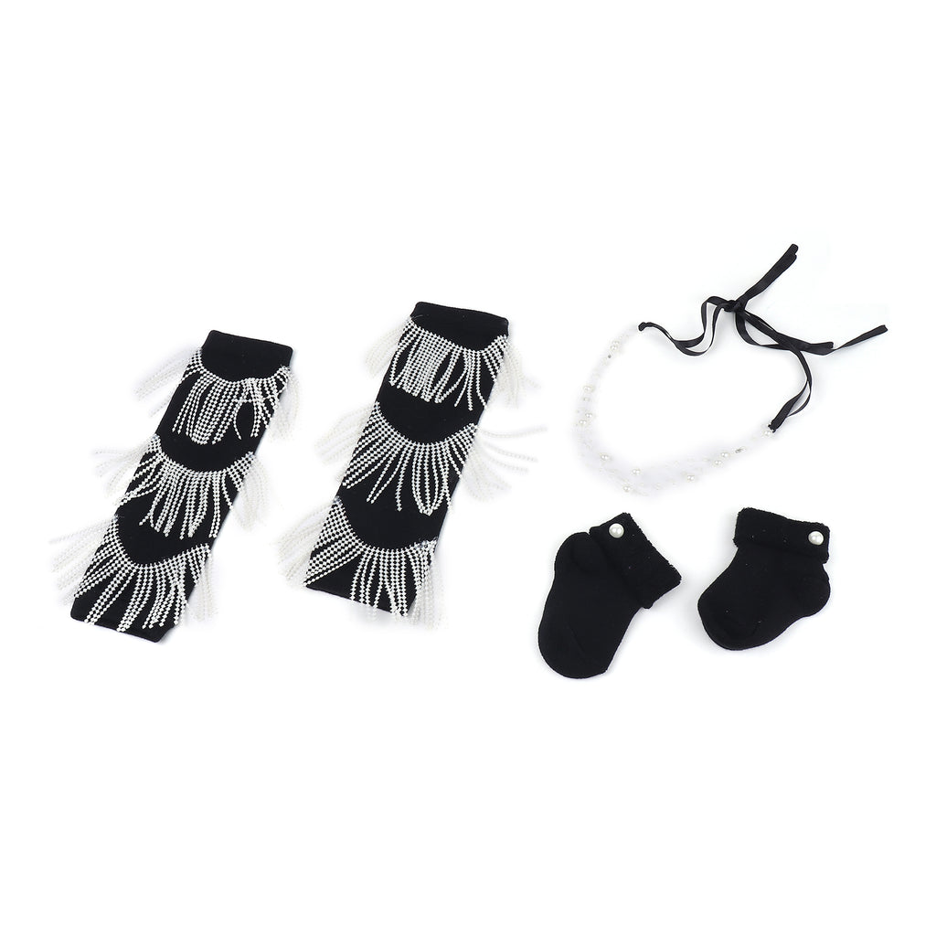 UNIQUE PEARLY FRINGE EMBELLISHED INFANT LEGWARMER WITH SOCKS & HEADBAND