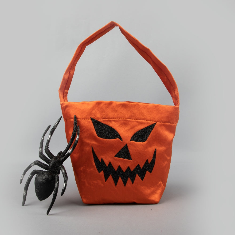 CUTE PUMPKIN BAG FOR THAT EXTRA TOUCH OR TRICK OR TREAT EVENING.
