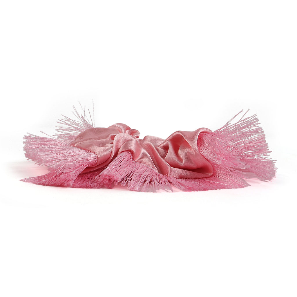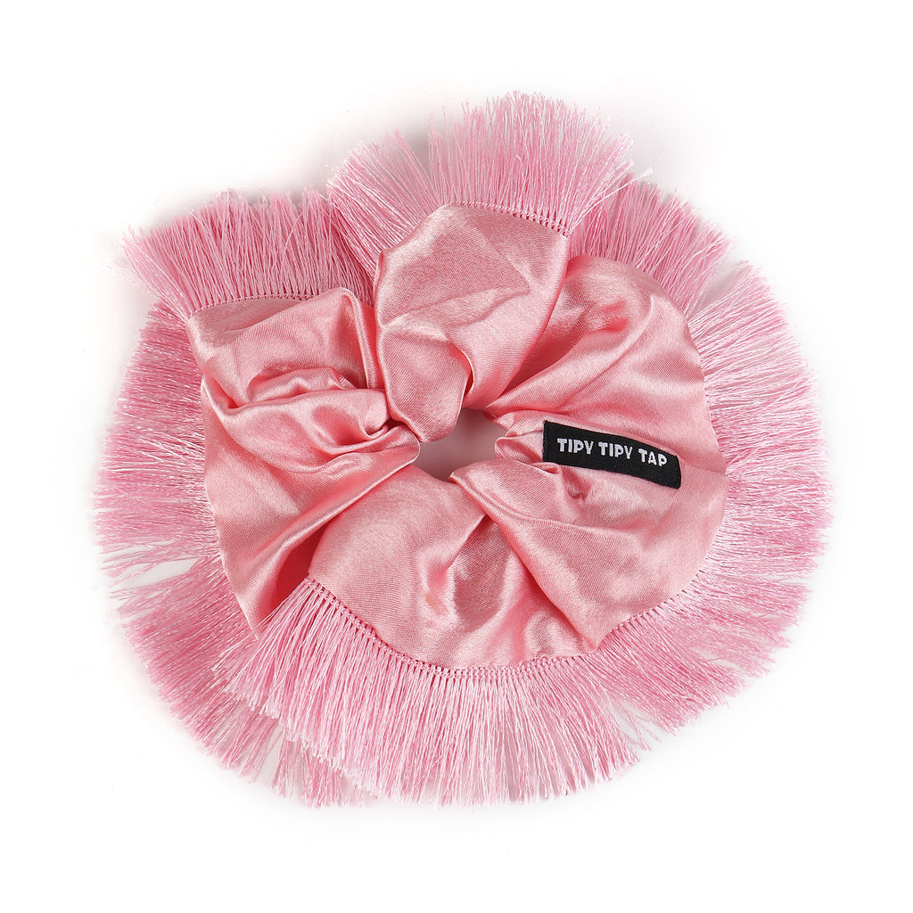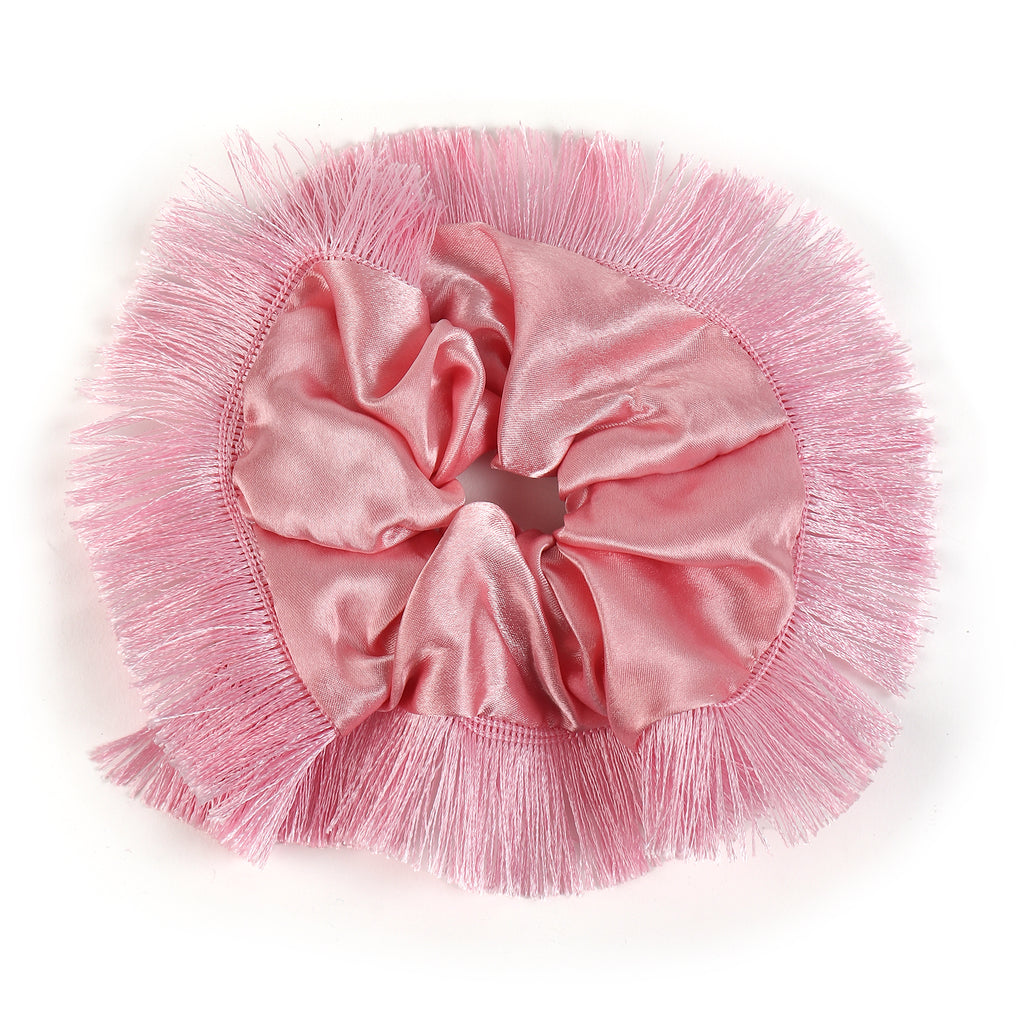 SATIN SCRUNCHIE WITH FRINGES TRIMS FOR EXTRA CHARM