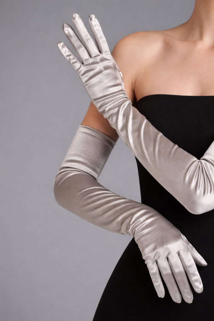 Satin FULLFINGER party wear gloves are a timeless accessory that can elevate any outfit, adding a touch of vintage glamour and refined elegance. These gloves are designed to fit snugly, contouring to the shape of the hand and arm. Classic Opera Length And Stretchable Fit