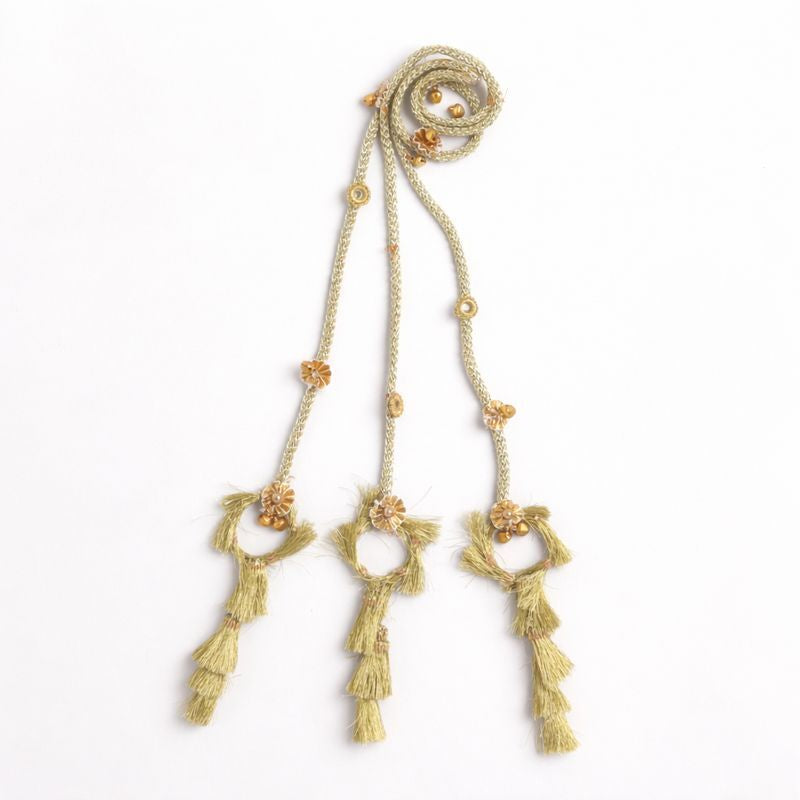 THE RICH GOLDEN TONES AND INTRICATE DETAILING MAKE IT PERFECT FOR WEDDINGS, FESTIVE OCCASIONS, CULTURAL EVENTS, AND TRADITIONAL OUTFITS. LIGHTWEIGHT YET EYE-CATCHING, THIS PARANDI ENHANCES BRAIDS WITH A REGAL FINISH AND ADDS TIMELESS CHARM TO YOUR OVERALL LOOK.
