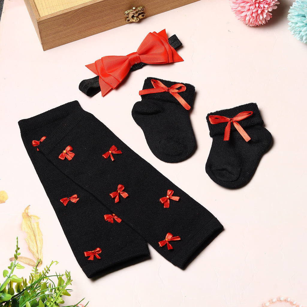 BOWS FILLED INFANT LEGWARMERS WITH SOCKS & HEADBAND