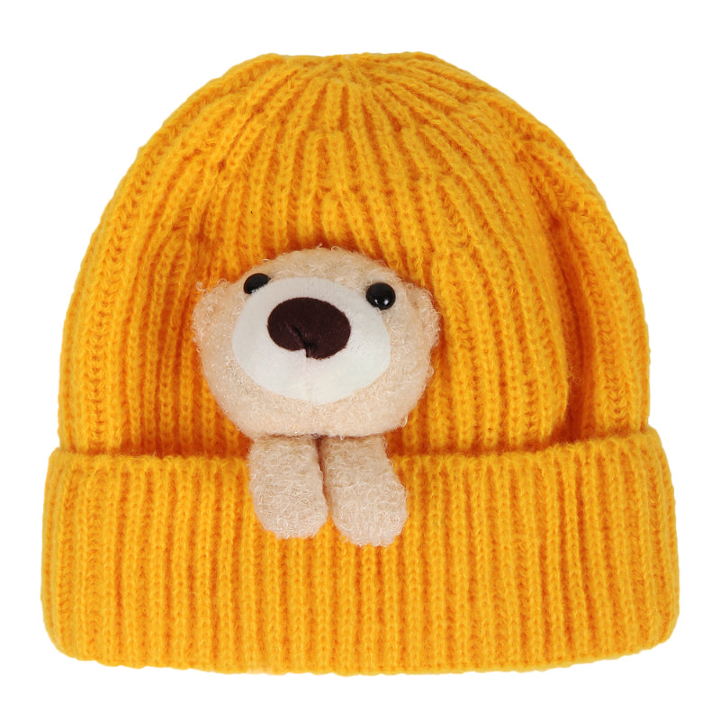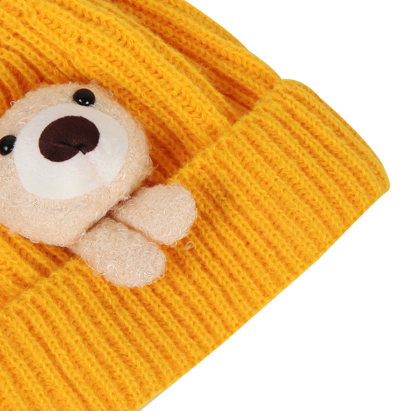 WINTER BEANIE CAP WITH ATTACHED 3D TEDDY
