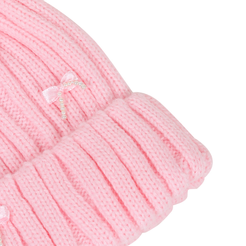 POM POM WITH MINI BOWS ATTACHED WINTER PARTYWEAR INFANT CAP