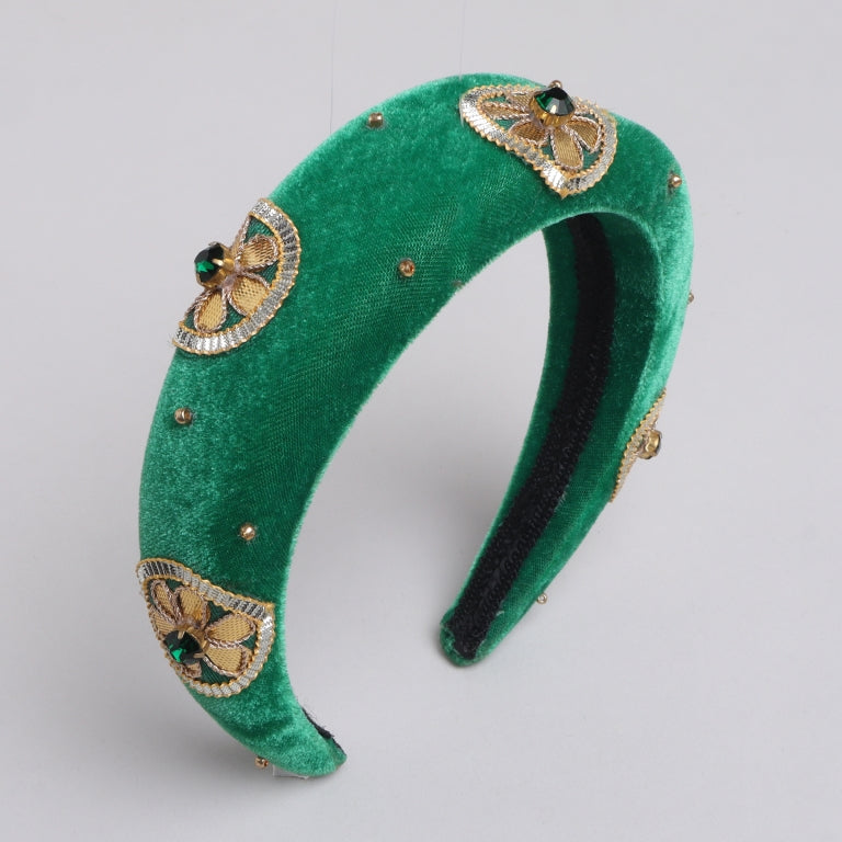 PUFFY FESTIVE ETHINIC HAIRBAND EMBELLISHED WITH GOTA AND STONES.