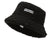 Made from faux fur, featuring a round crown and a wide brim that frames the face